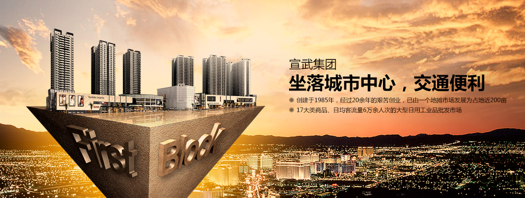 徐州宣武集團有限公司成立于1985年,占地100余畝,建筑面積26萬平方米,有商鋪8000余間,從業人員3.5萬余人。經營服裝、鞋帽、針織、百貨、電子電器、文體辦公、床上用品、鐘表眼鏡等十八大類商品,具有貨源足、品種全、信息靈、價格廉、信譽好的經營特色,輻射淮海經濟區,年交易額達200余億元。為全國具有知名度和影響力的大市場之一。被徐州市政府確定為重點批發市場、重點財源培育單位和超百億元重點培育市場。